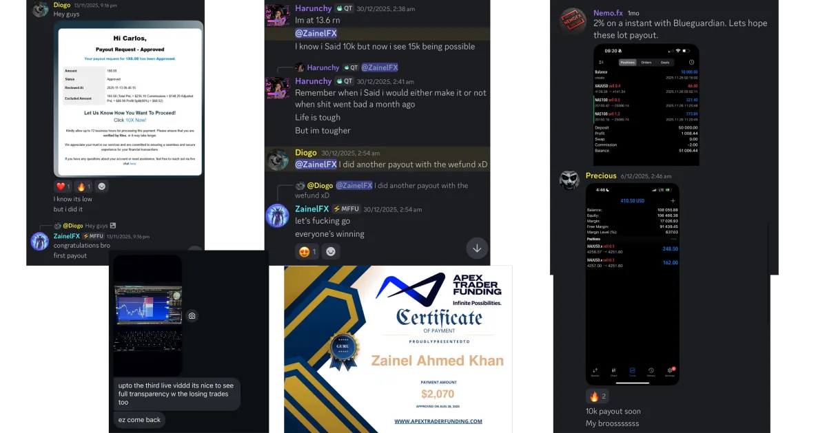 At FT Academy, we help you get funded and secure payouts using prop firm capital, not your own. The best part is we don't just offer weekly group calls but we offer weekly 1 on 1 coaching so we can actually track your progress and hold you accountable. You also get access to a Discord community of like-minded traders who all have the same goal!